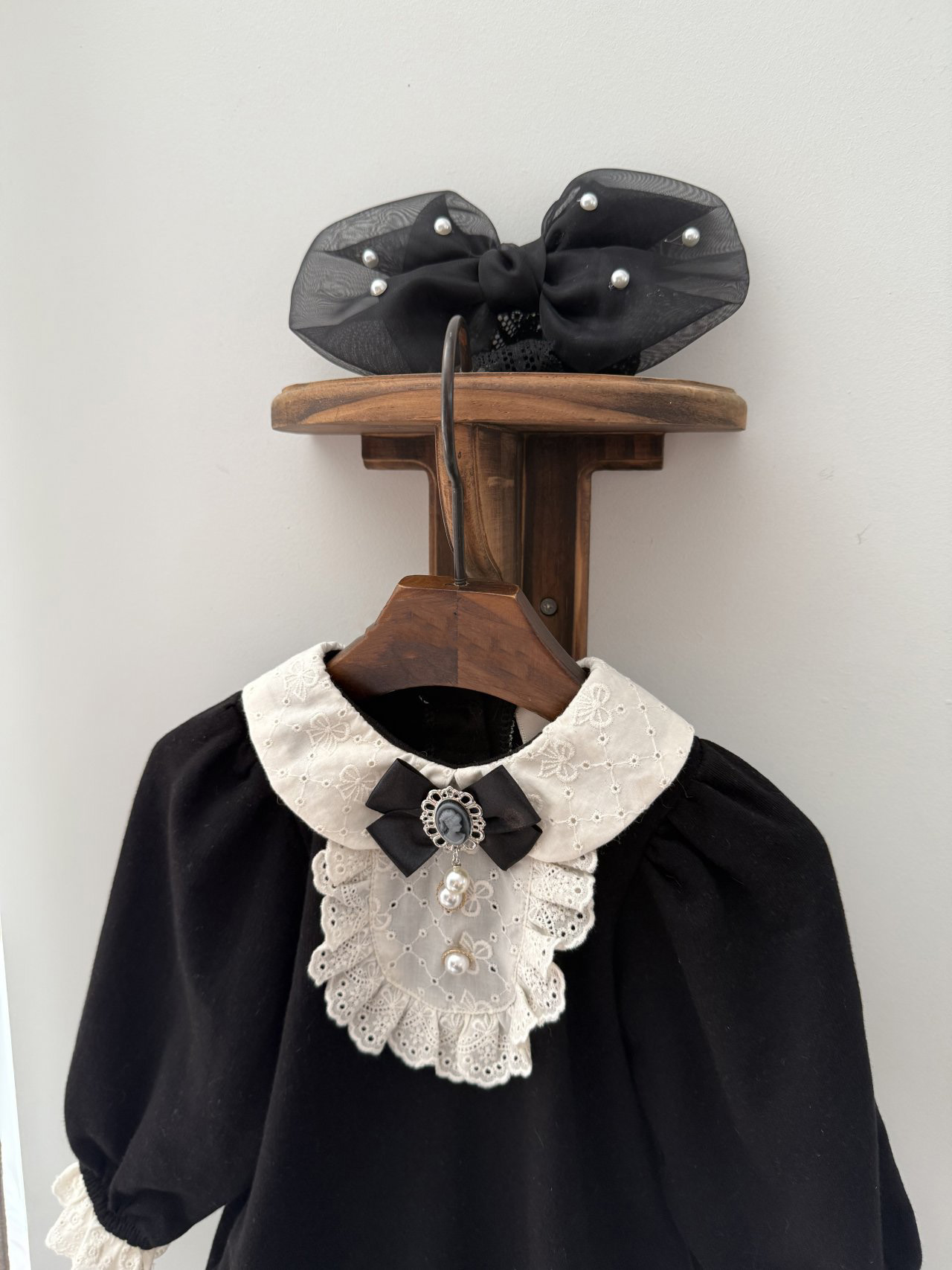 The sweetest fall romper, made of organic cotton. A beautiful, cozy, comfortable fabric, which offers comfort and warmth. Features an empire collar, puffy sleeves gathered at the wrists.