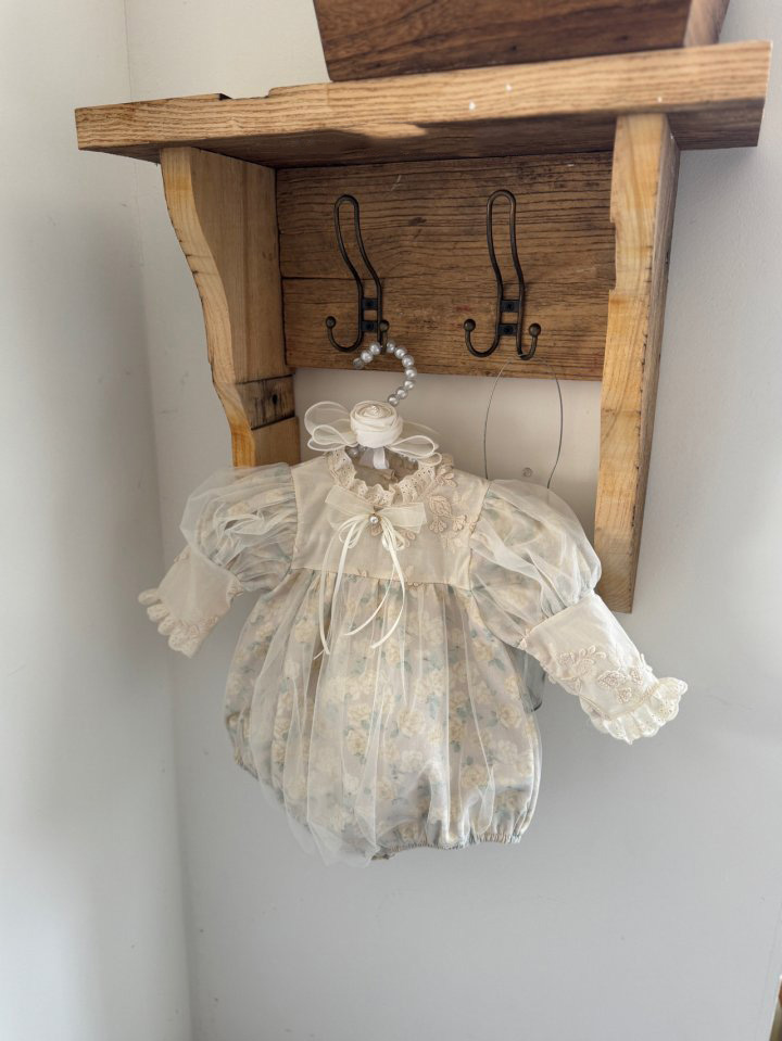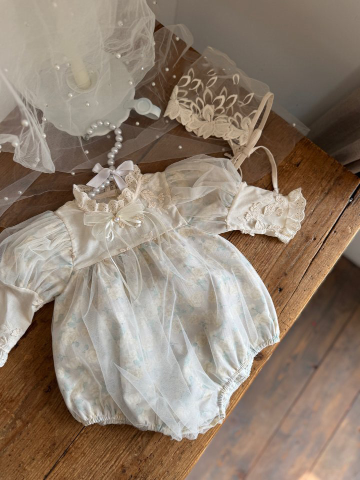 A true masterpiece of craftsmanship, the Rosa Suit is designed for the most precious moments. This exquisite romper features layers of soft tulle over a delicate floral print, accented with intricate lace embroidery and a dainty satin bow at the chest. Accompanied by a matching lace bonnet, this set brings a touch of “royal” sophistication to your baby’s wardrobe.